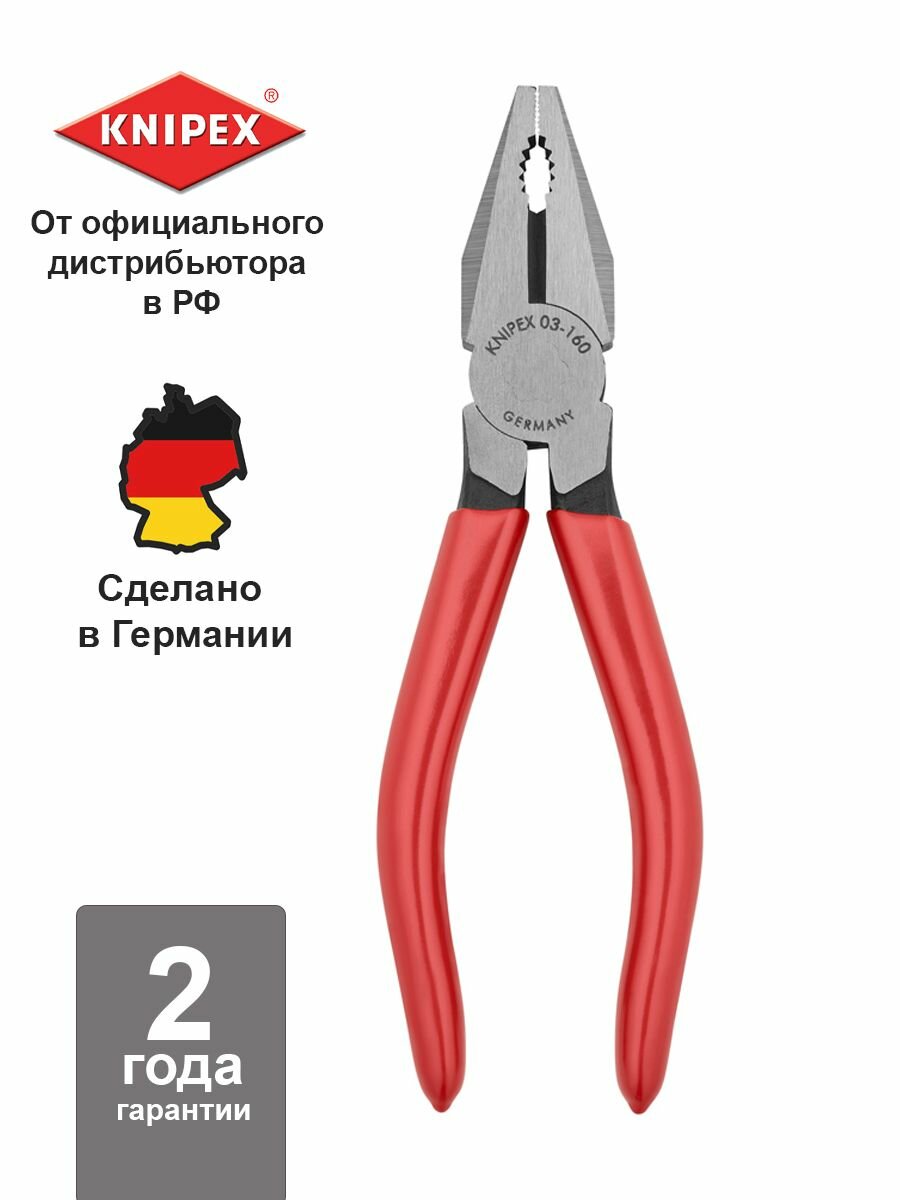 Пассатижи/плоскогубцы KNIPEX комбинированные 160 мм, фосфатированные, обливные ручки KN-0301160 информация: