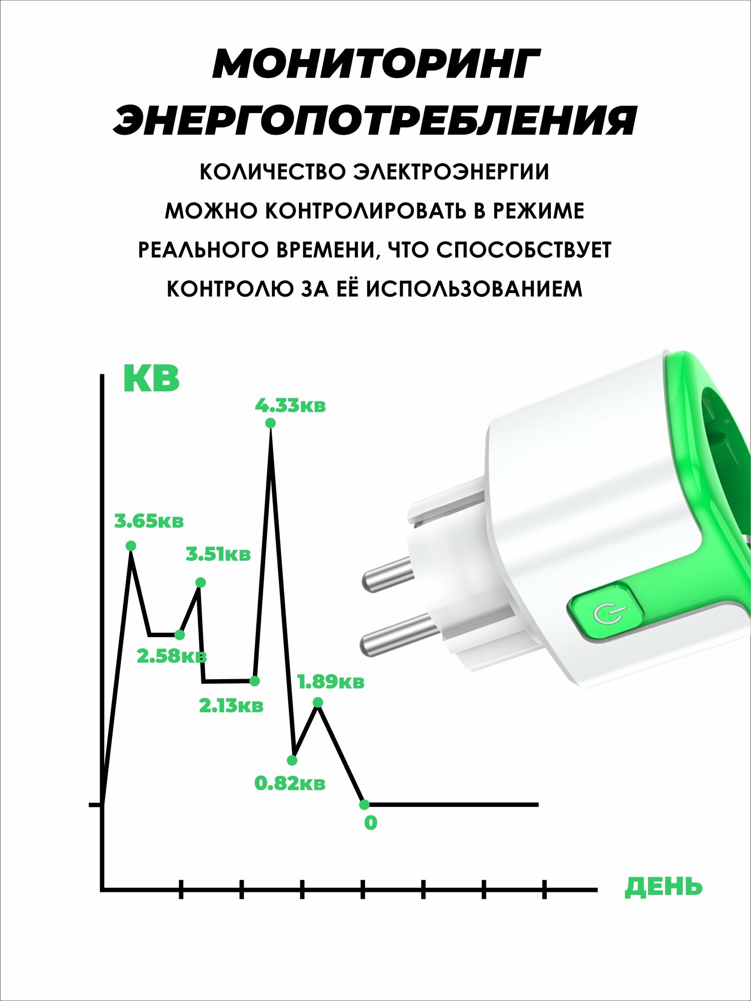 Умная беспроводная WiFi розетка 20А Green информация:
