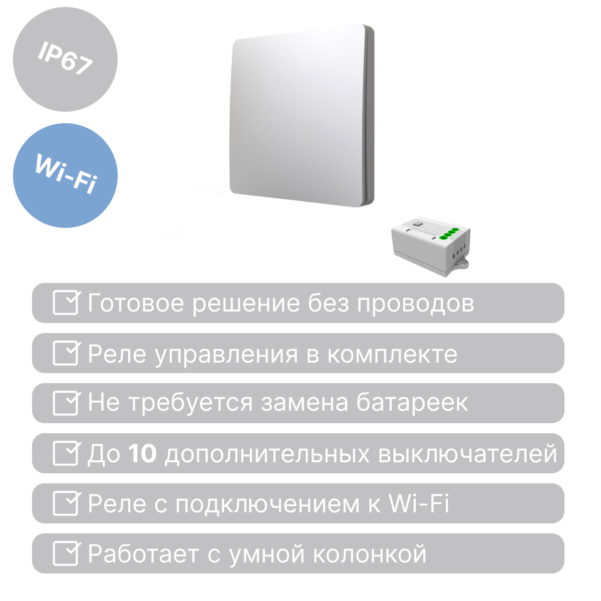 Умный беспроводной выключатель GRITT Space 1кл. белый комплект: 1 выкл. IP67, 1 реле 1000Вт 433 + WiFi с управлением со смартфона, S181110WWF