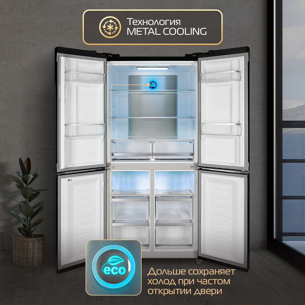 Холодильник HIBERG RFQ-500DX NFXd inverter отдельностоящий, 4 двери, 545 л, темная нержавеющая сталь