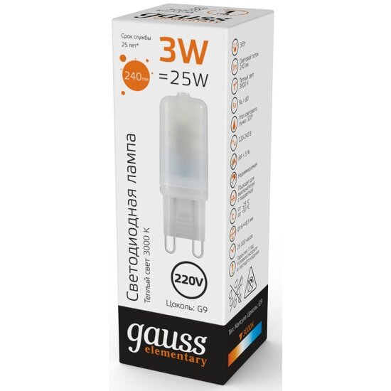 Gauss Лампа Elementary G9 AC220-240V 3W 240lm 3000K пластик LED 14913 информация: