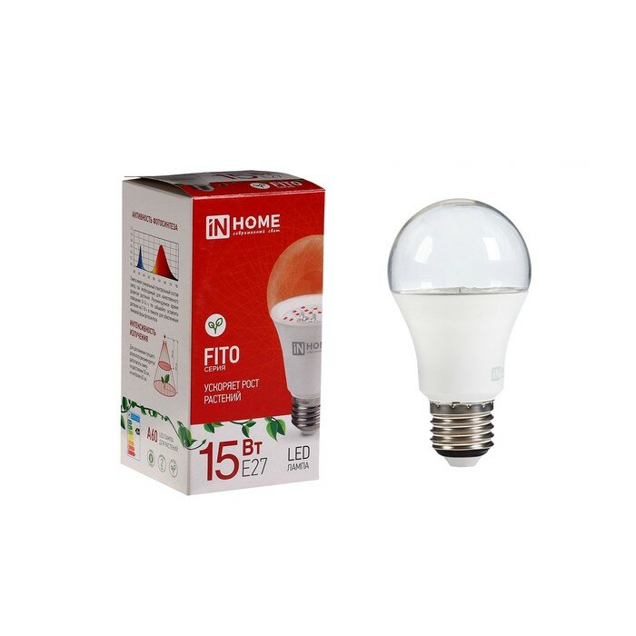 10 цен на Лампа светодиодная LED-A60-FITO ЛОН А60 E27 15W 15мкмоль IN HOME 6502