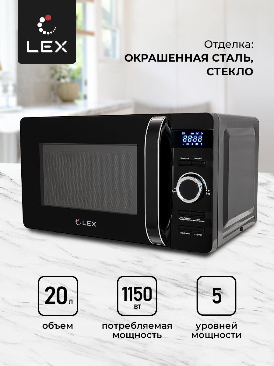Микроволновая печь - СВЧ LEX FSMO D.03 BL, 20л черный информация: