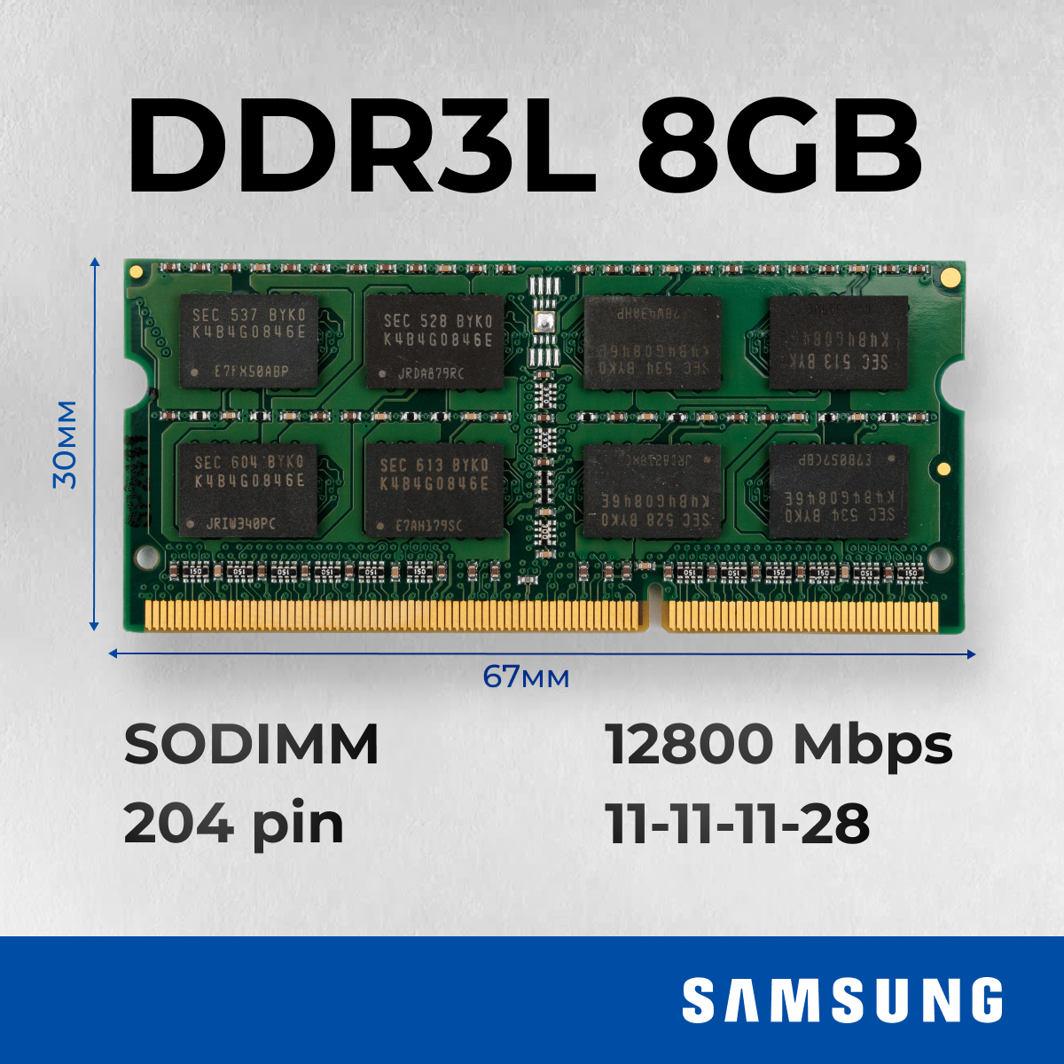 Оперативная память Samsung 8 ГБ DDR3L 1600 МГц SODIMM CL11 M471B1G73DB0-YK0 204-pin