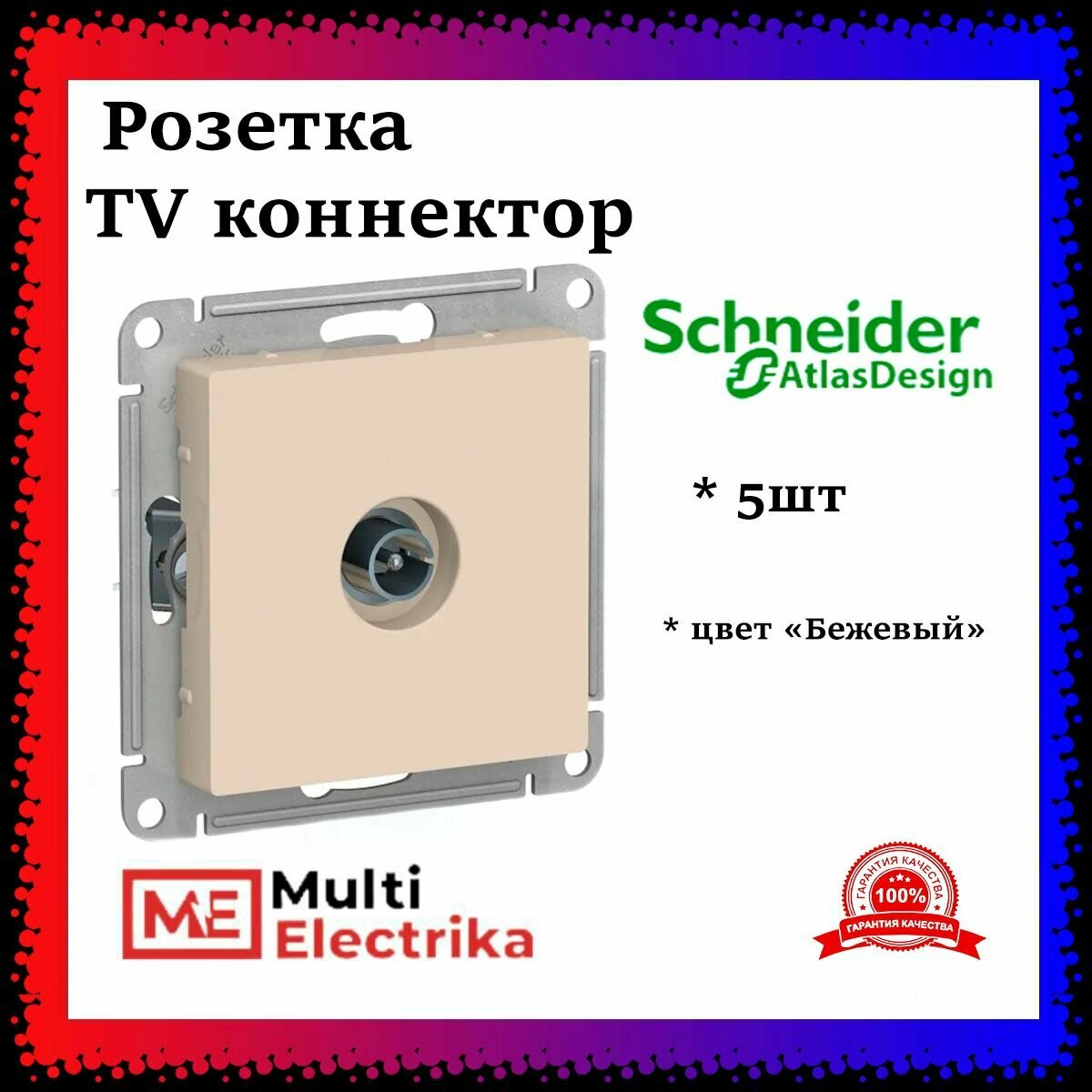 5 шт. Systeme Electric AtlasDesign Бежевая , Розетка антенная одиночная TV коннектор, механизм, ATN000293 1 537 ₽
