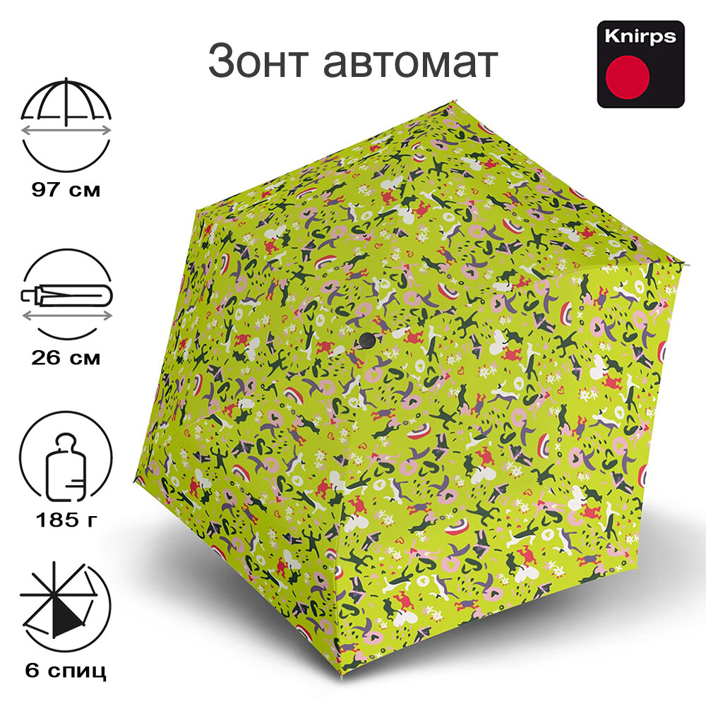 Ультралегкий зонт автомат женский Knirps, 6 спиц, антиветер 5 390 ₽