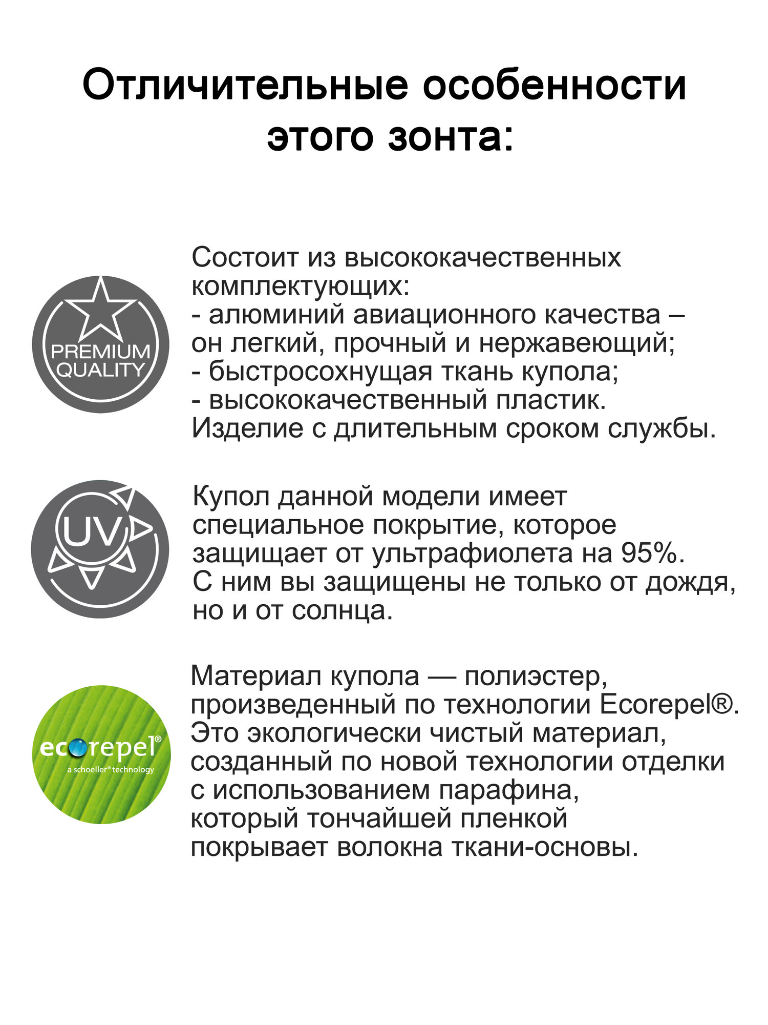 | Особенности модели | УФ-защита, система «антиветер», чехол в комплекте |