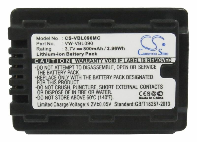 Аккумулятор CameronSino CS-VBL090MC для видеокамеры Panasonic VW-VBL090, VW-VBK180, VW-VBK180E-K (800mAh) информация: