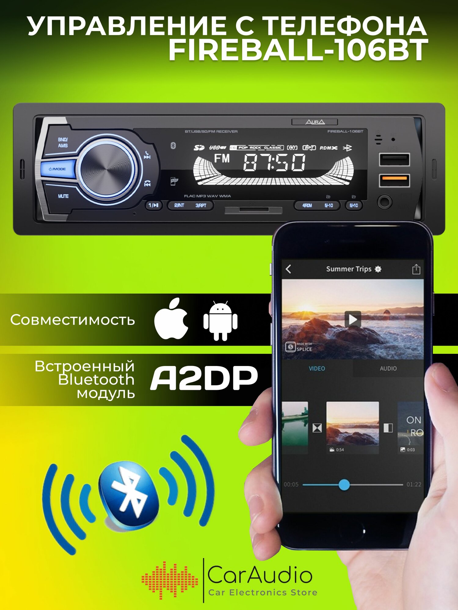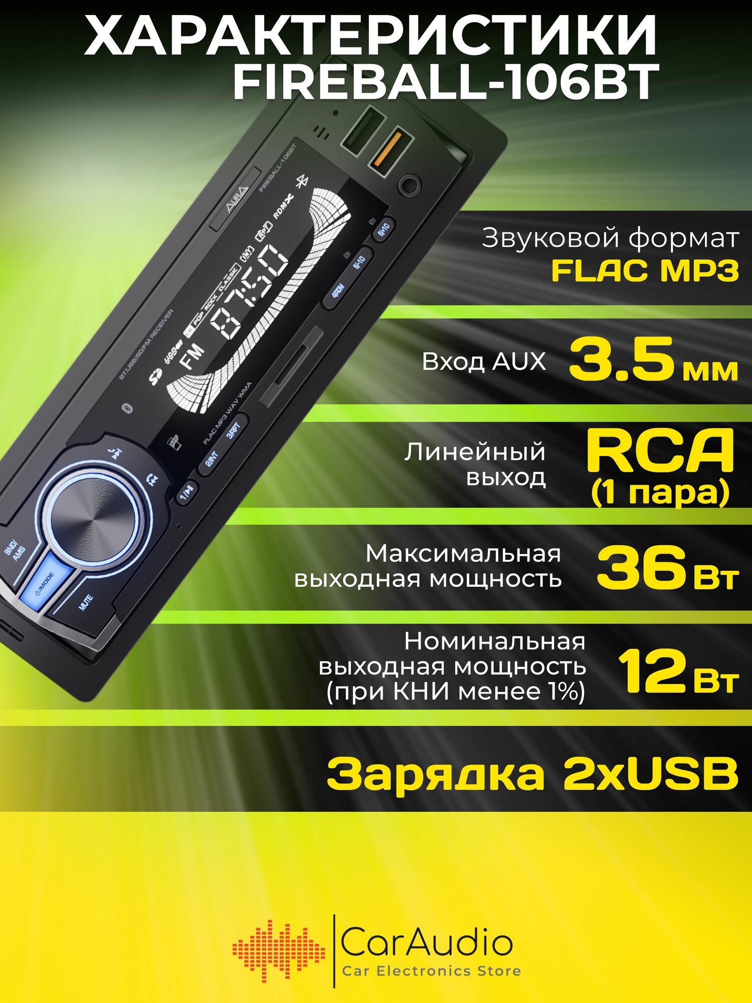 Отзывы на Магнитола автомобильная Aura FIREBALL-106BT USB/SD/MMC-ресивер, синяя подсветка