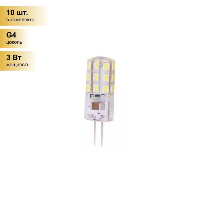 Отзывы на (10 шт.) Светодиодная лампочка Jazzway G4 220V 3W(200lm) 4000K 4K 38x13 силикон .1032072 . Цоколь G4