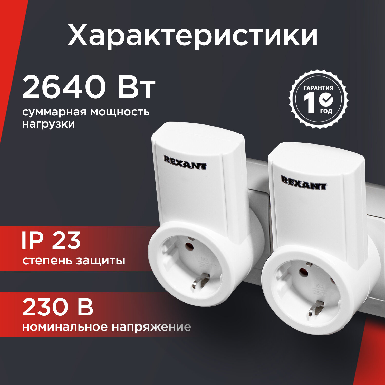 Беспроводная радиоуправляемая розетка REXANT с пультом управления, 2 шт 2 401 ₽