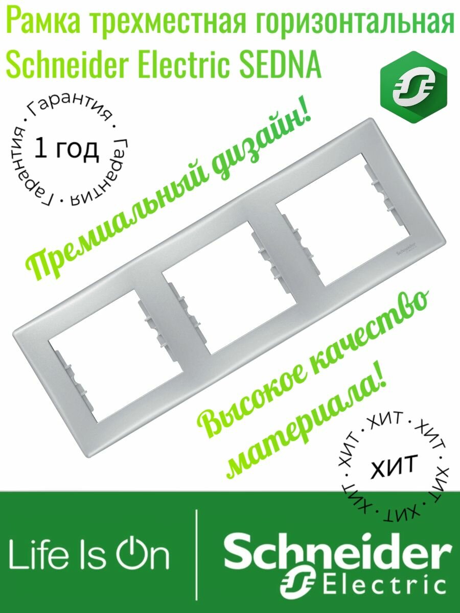 10 цен на Schneider Electric Sedna Рамка 3 поста горизонтальная алюминий (SDN5800560)