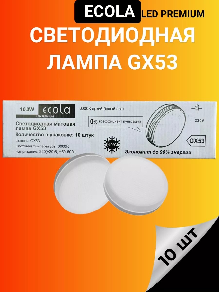 Лампочки светодиодные 10 шт., GX53 Ecola LED Premium 12,0W 6000K Холодный белый свет, набор