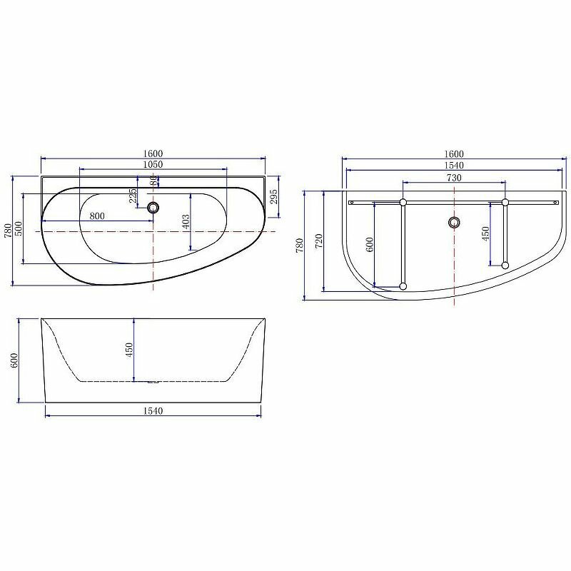 Ванна Ceruttispa COMO150 акриловая (1500x750x560) отдельностоящая, белая