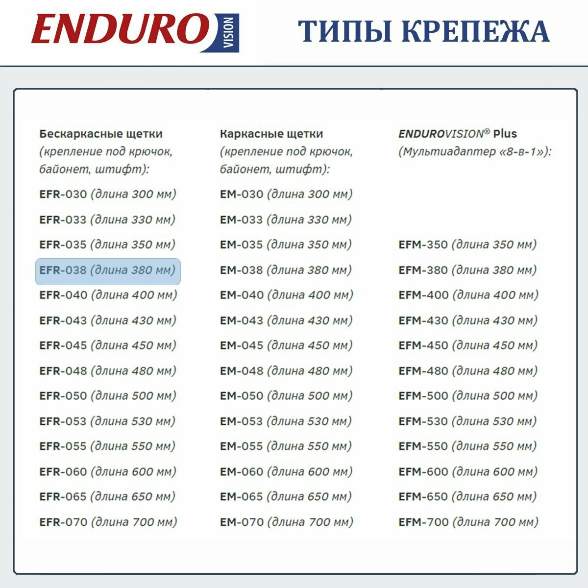 Щетки стеклоочистителя Endurovision 380mm EFR-038