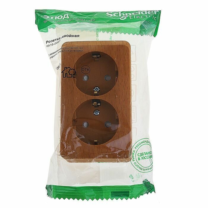 Розетка двойная Systeme (Schneider) Electric Этюд, накладная, с з/ш, с/з, бук 550 ₽