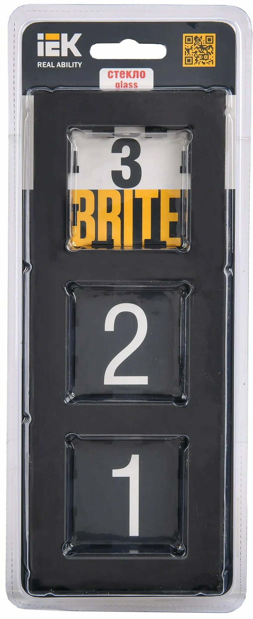 IEK BRITE Рамка 3-мест. РУ-3-2-БрЧ стекло черн. информация: