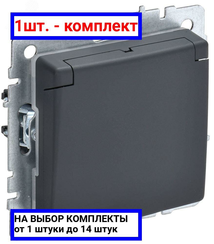 10 цен на IEK BRITE Розетка 1-местная с заземлением с защитными шторками и крышкой 16А IP44 РСбш10-3-44-БрГ графит
