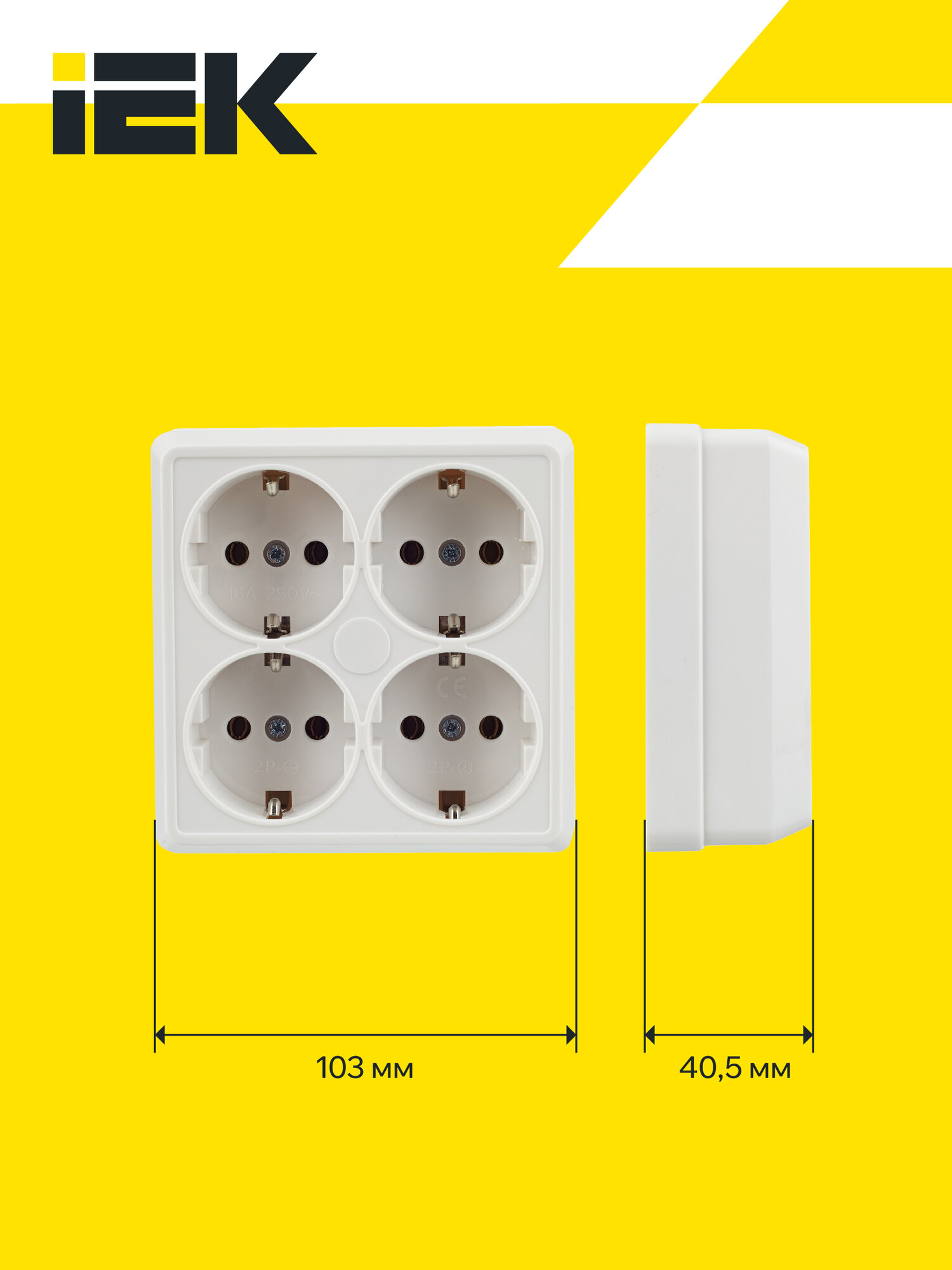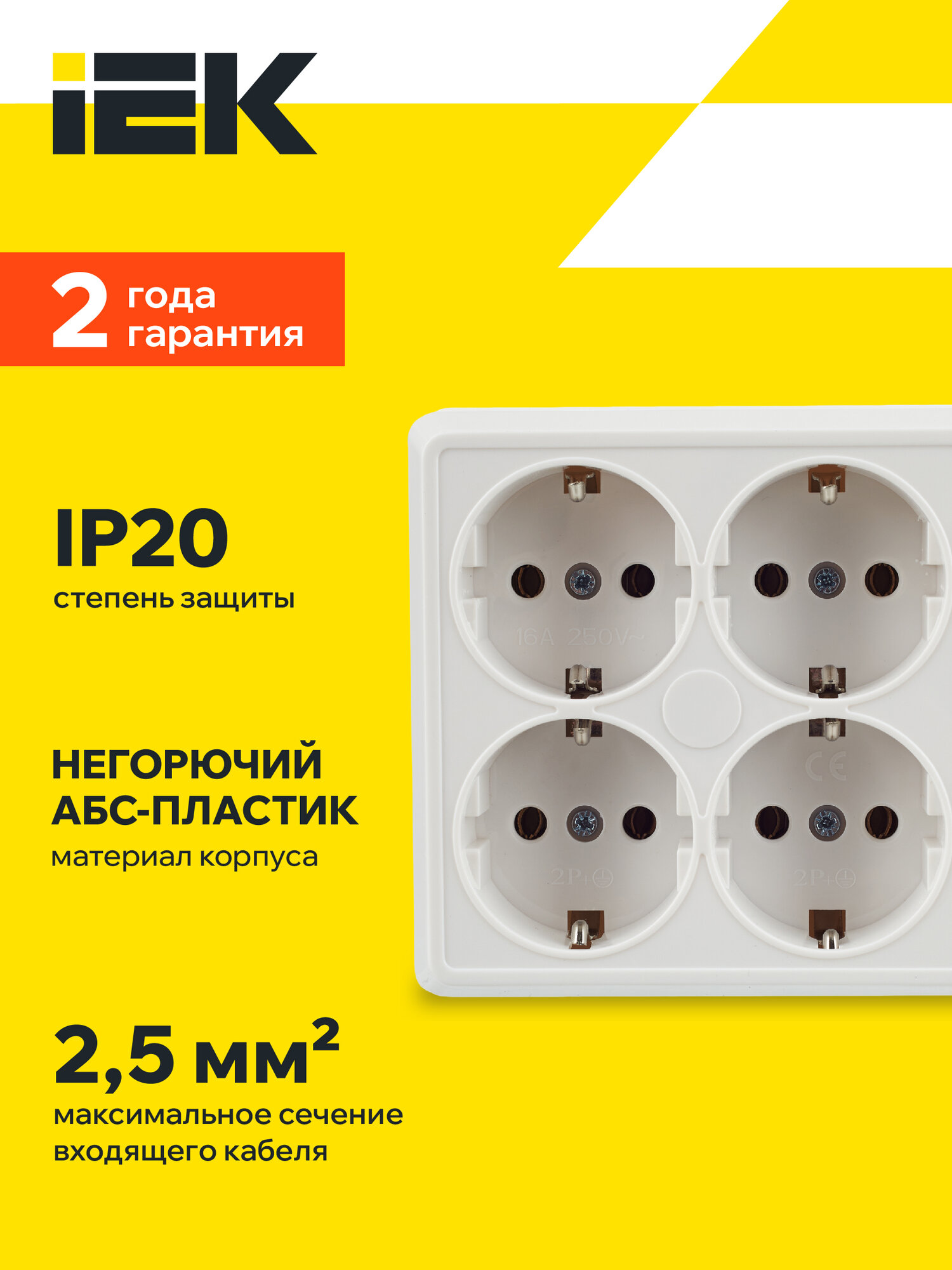 Розетка четырехместная октава, открытый монтаж, с заземлением, белый | код. ERO41-K01-16-DC | IEK (2шт.в упак.)