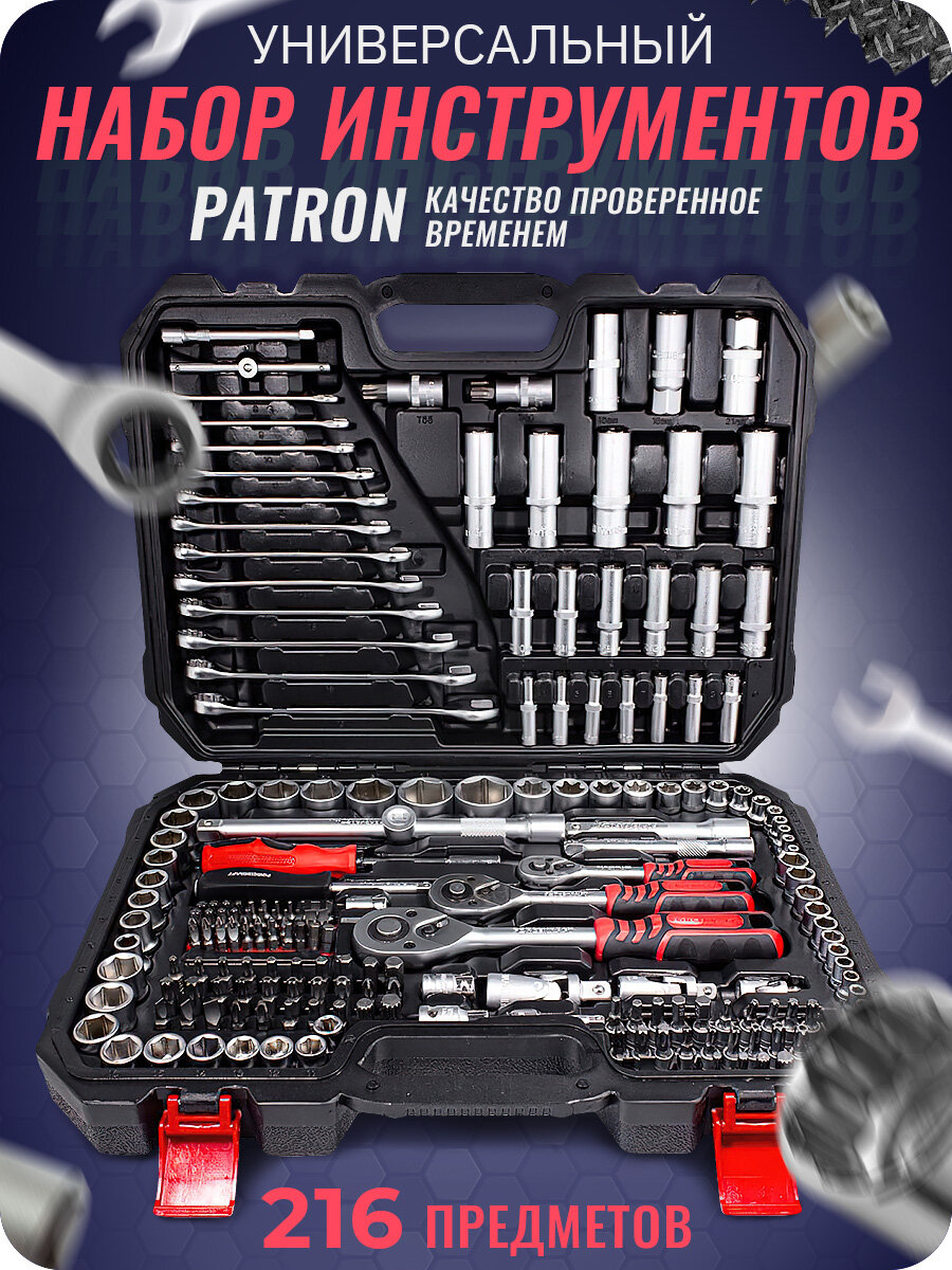 PATRON P38841 Набор инструментов 216 пр. 216 пр: 1/4 inch, 3/8 inch, 1/2 inch, 4-32 мм, 6 граней