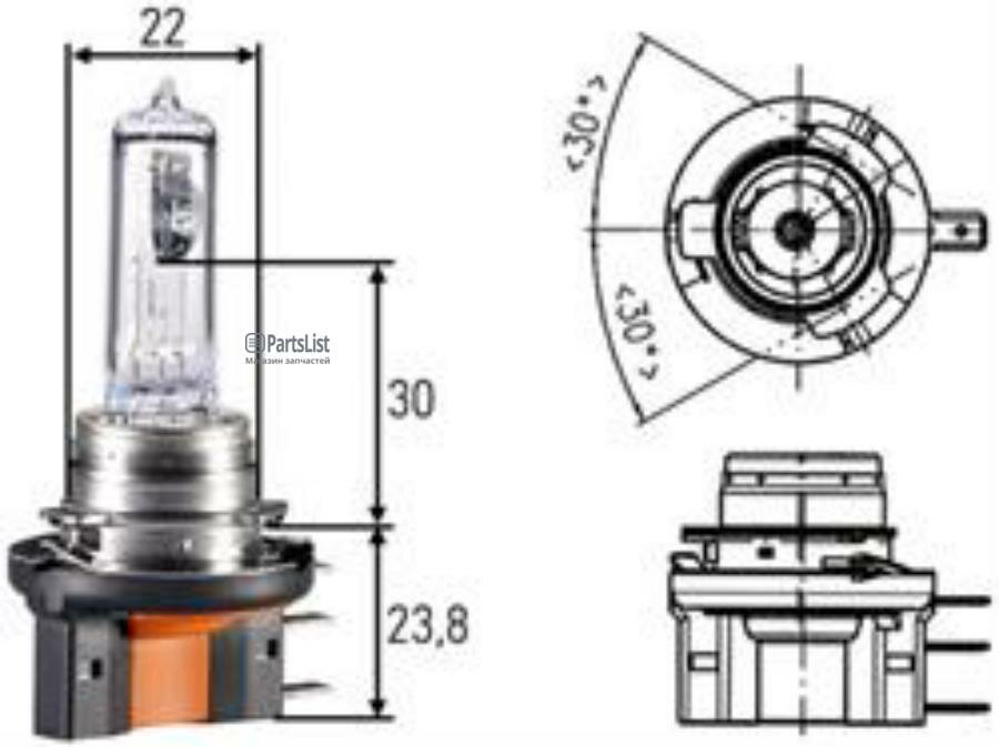 Лампа накаливания галогенная (H15 12V 15/55W PGJ23t-1) 8GJ168119001 Hella информация: