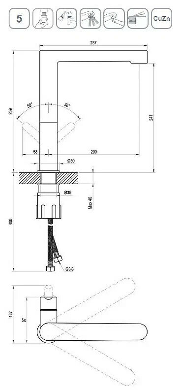 | Высота излива | 241 мм |