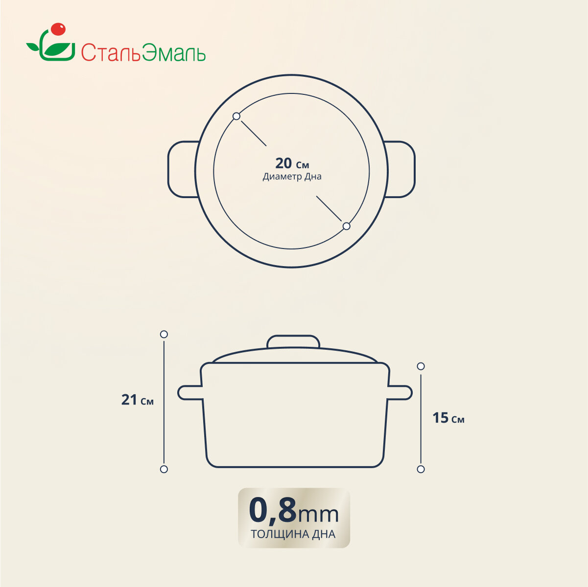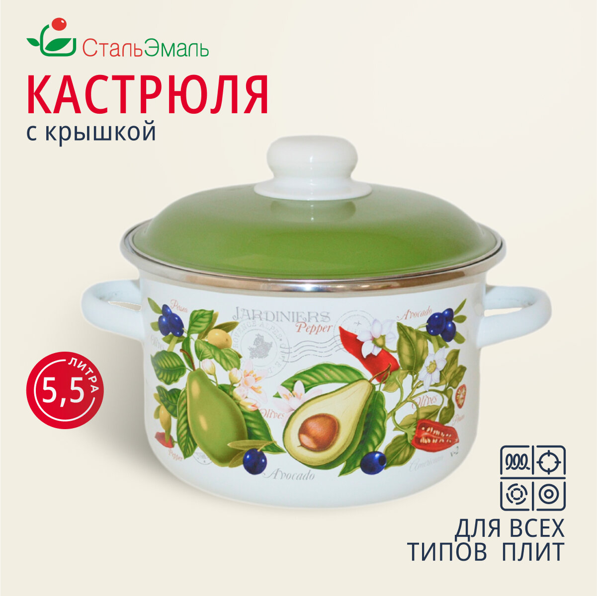 Кастрюля эмалированная СтальЭмаль Авокадо с крышкой, 5,5 л информация: