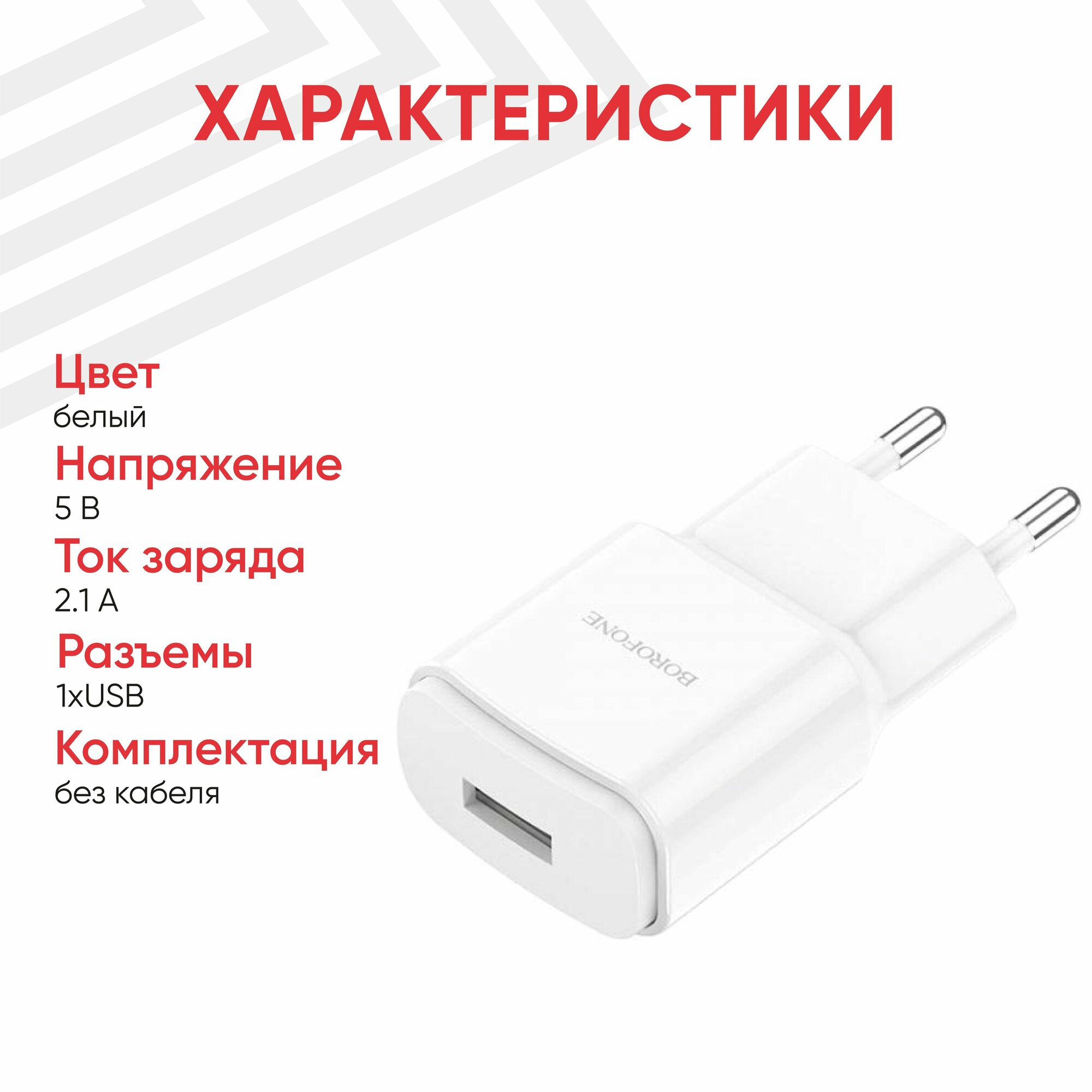 Отзывы на Блок питания (сетевой адаптер) Borofone BA48A Orion один порт USB, 5В, 2.1A, белый