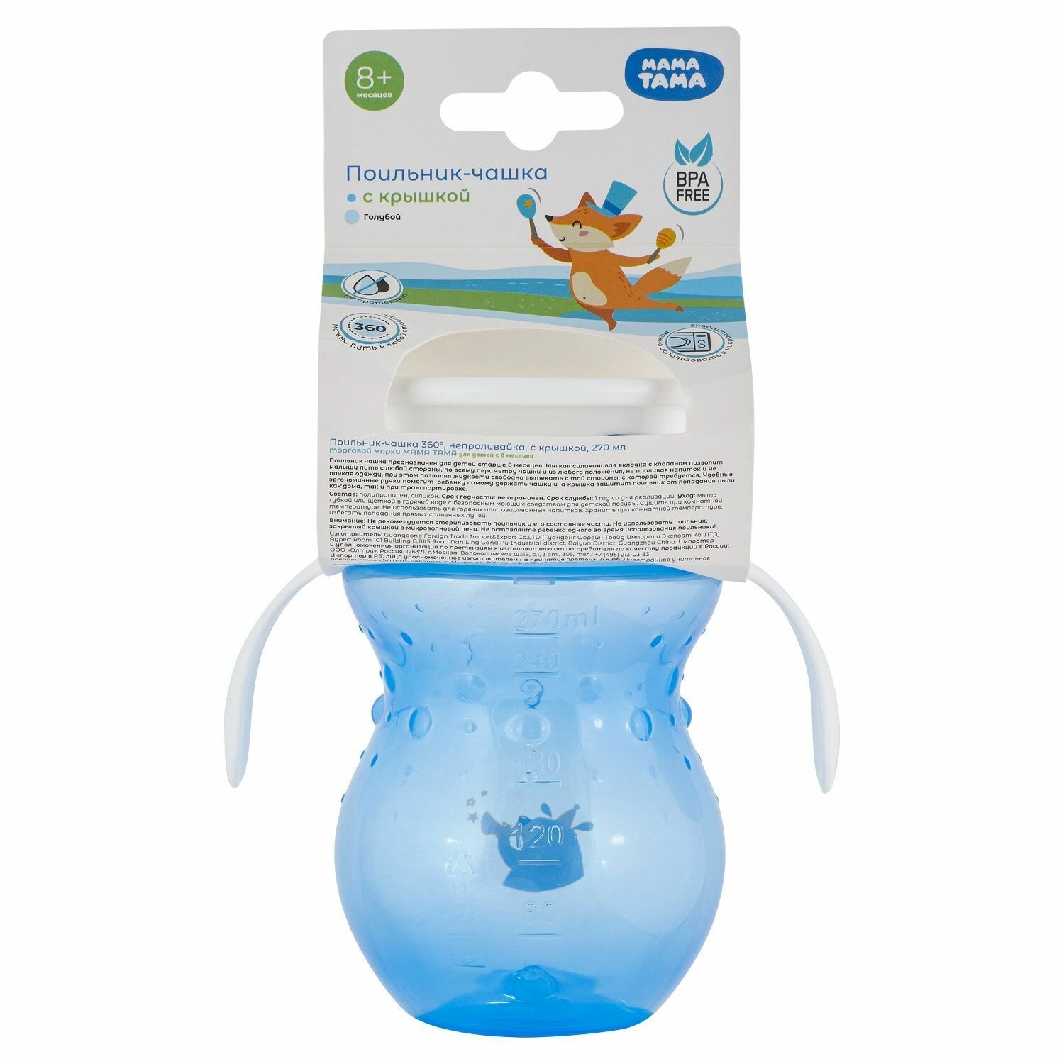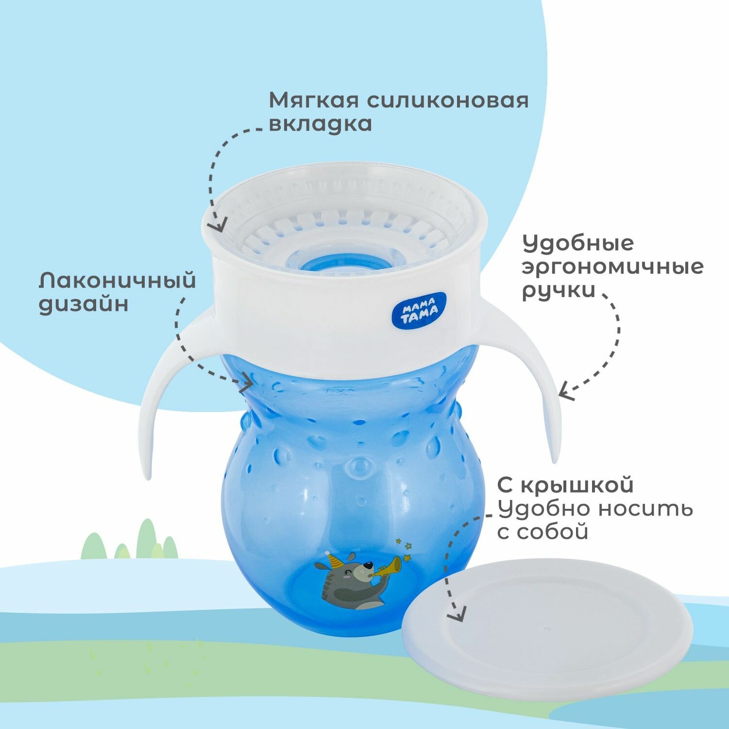 Поильник детский непроливайка с ручками 270 мл мама тама голубой информация: