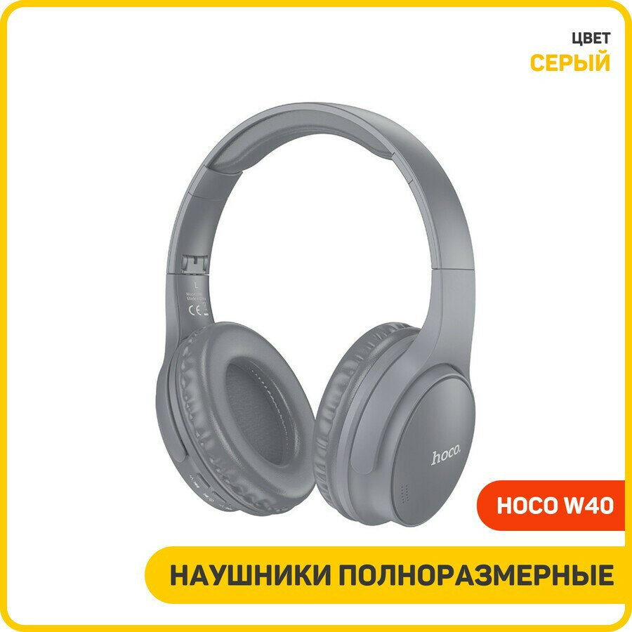 Наушники беспроводные W40 hoco с микрофоном, большие / с разъёмом для флешки, серый