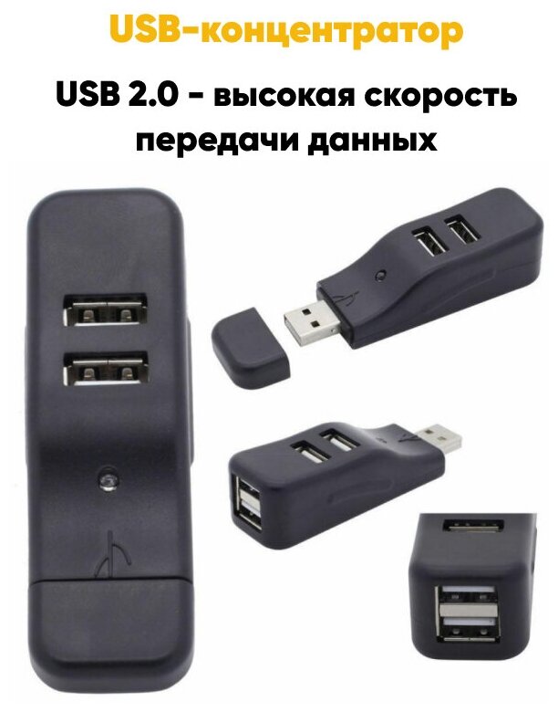 Разветвитель USB 2,0 для зарядки, цвет в ассортименте, black