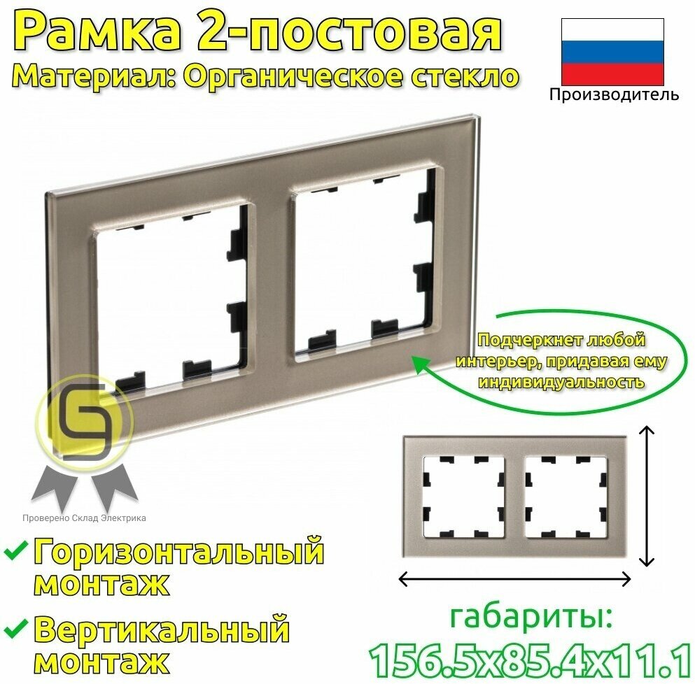 Рамка Schneider Electric AtlasDesign Nature на 2 поста, универсальная, стекло шампань информация: