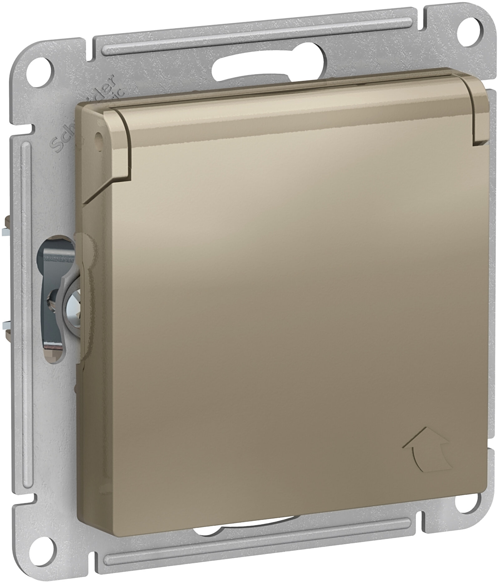 ATLASDESIGN Розетка с заземл. со шторк. с крышкой, 16А, IP20, механизм, шампань Schneider Electric ATN000546