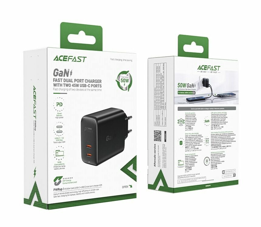 Зарядное устройство ACEFAST A29 PD50W GaN USB-C+USB-C dual port charger (EU) информация: