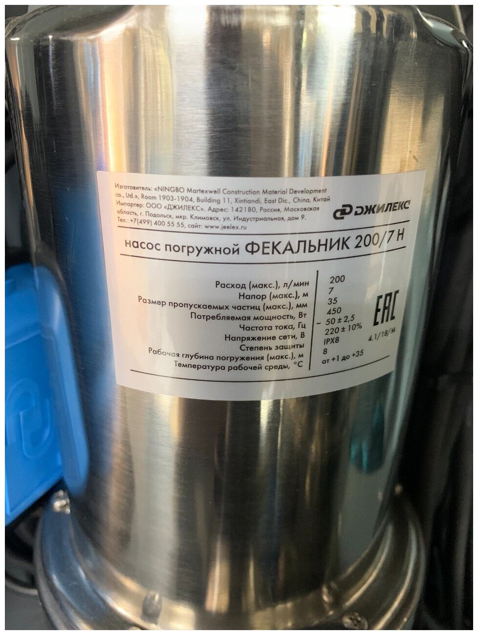 насос дренажный фекальник 200/7Н нерж ДЖИЛЕКС 5305 информация: