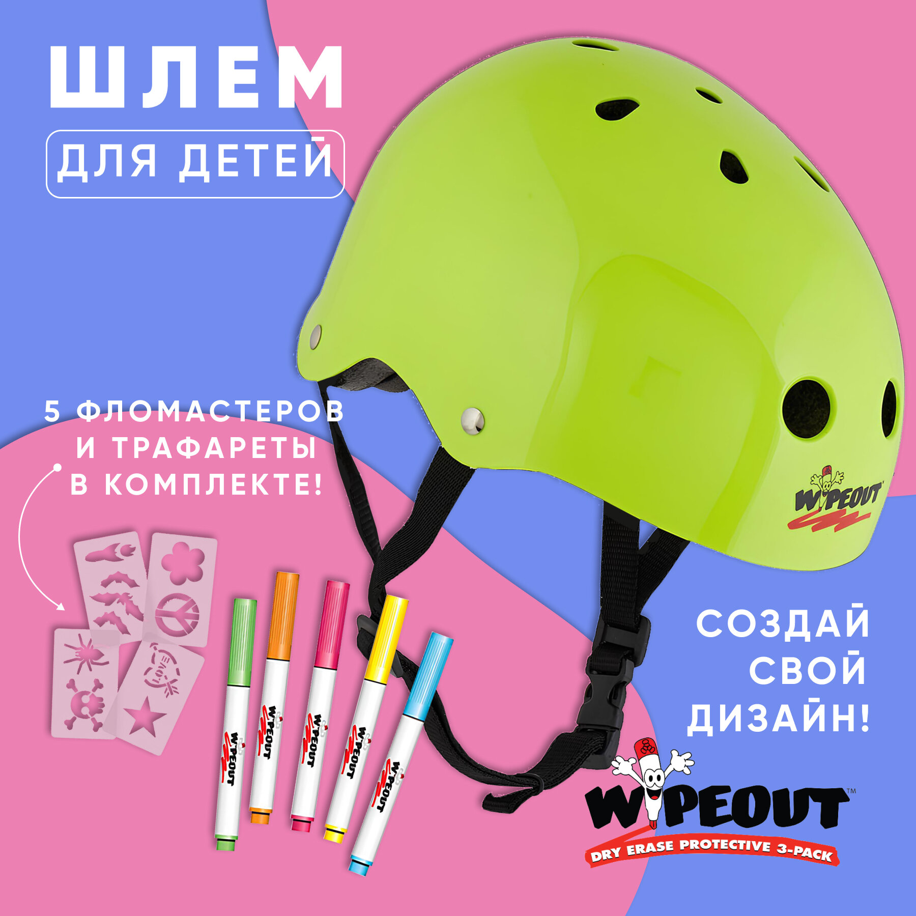 Шлем защитный с фломастерами Wipeout Neon Zest (L 8+, 52-56 см) - кислотный 3 738 ₽