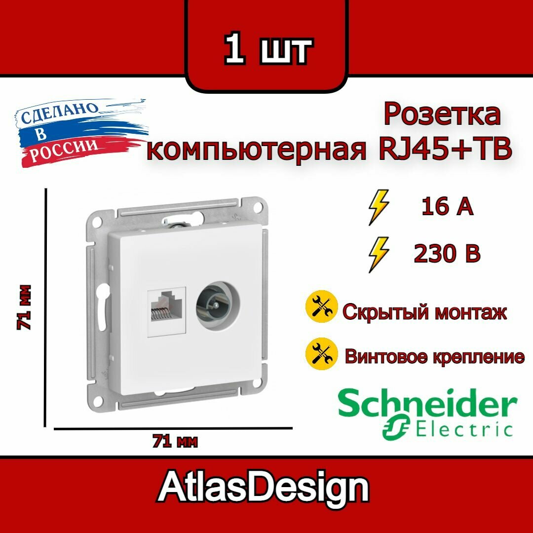 Розетка TV+RJ45 Cat.5 ATLASDESIGN, оконечная, белый. ATN000189 Schneider Electric