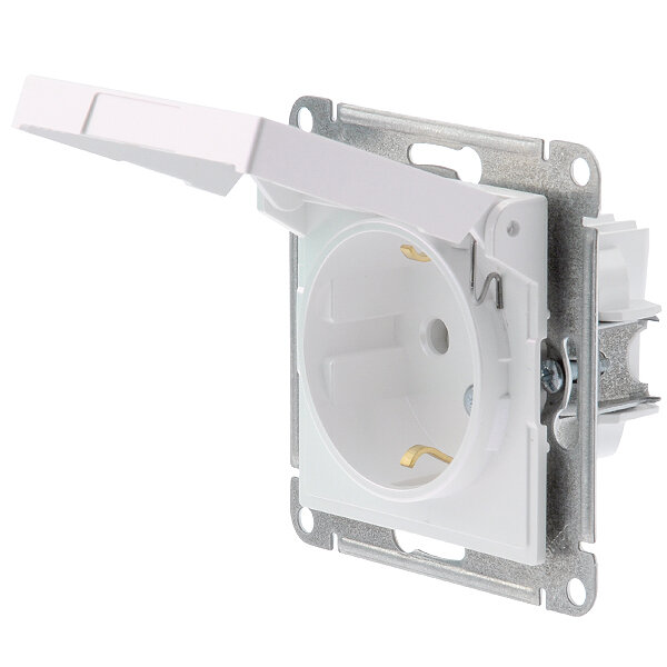 ATLASDESIGN Розетка с заземл. со шторк. с крышкой, 16А, IP20, механизм, жемчуг Schneider Electric ATN000446