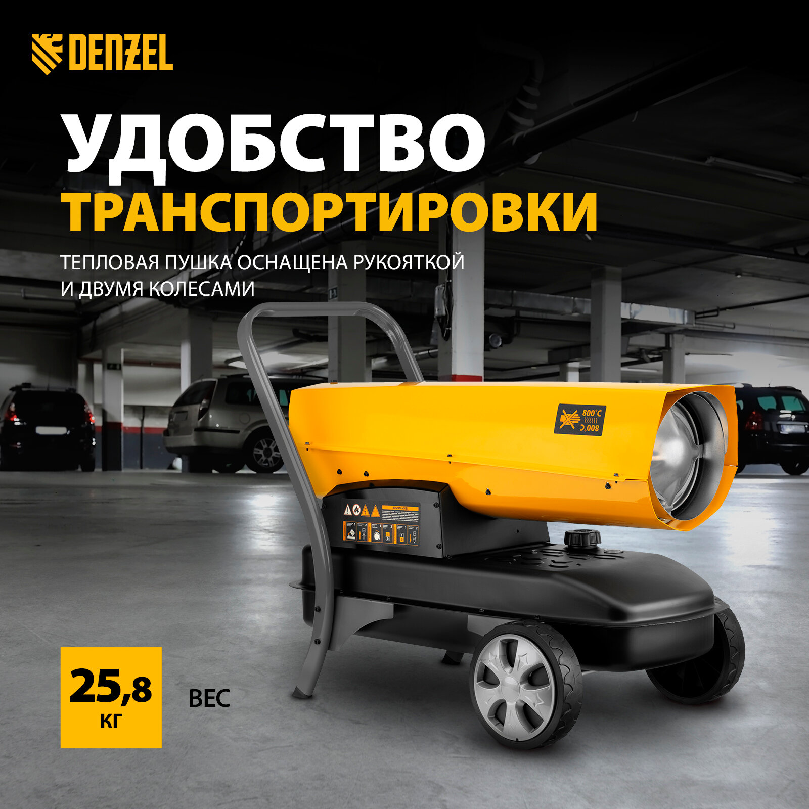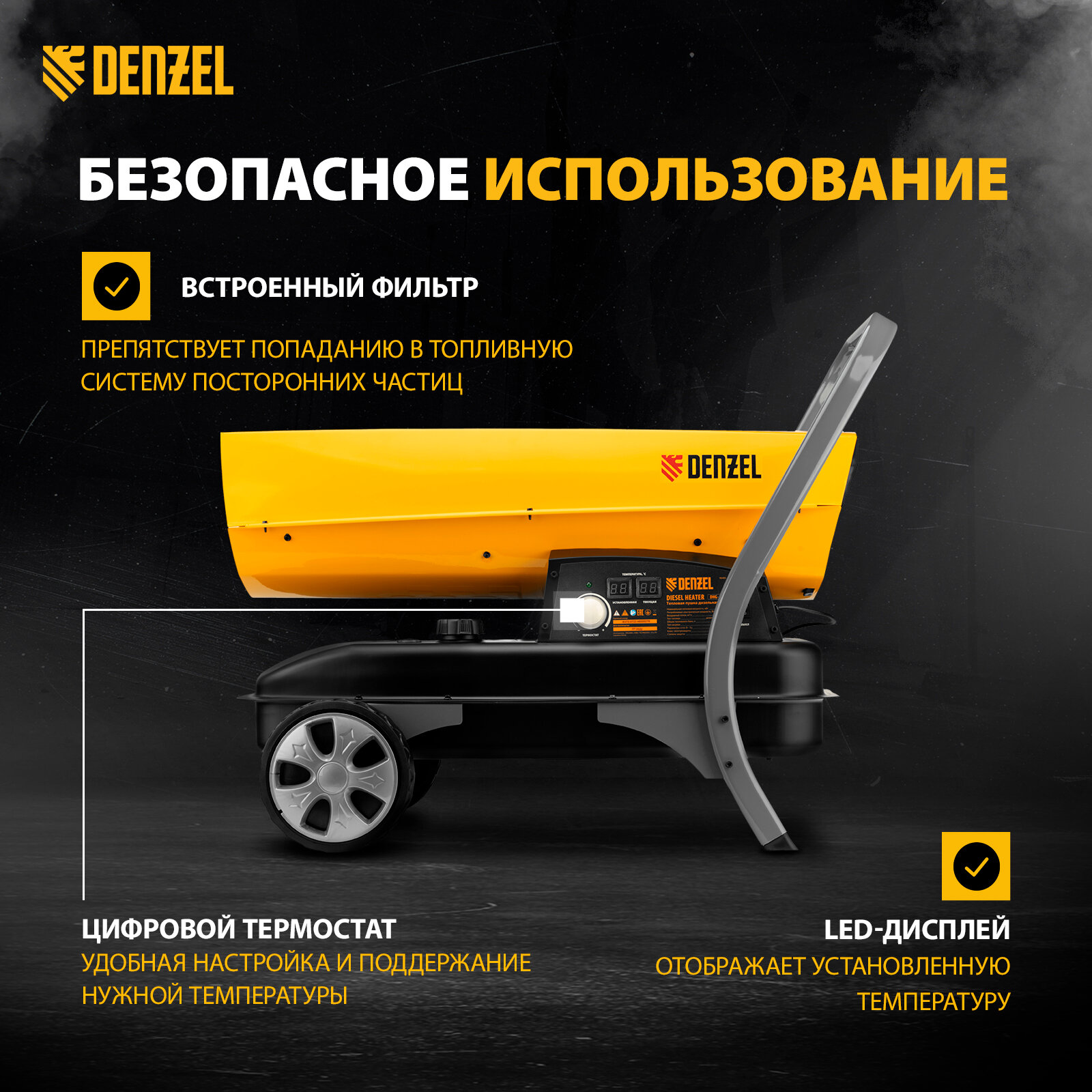 Отзывы на Дизельная тепловая пушка Denzel DHG-45i 45 кВт, 1000 м3/ч, прямой нагрев, электронный термостат 96485