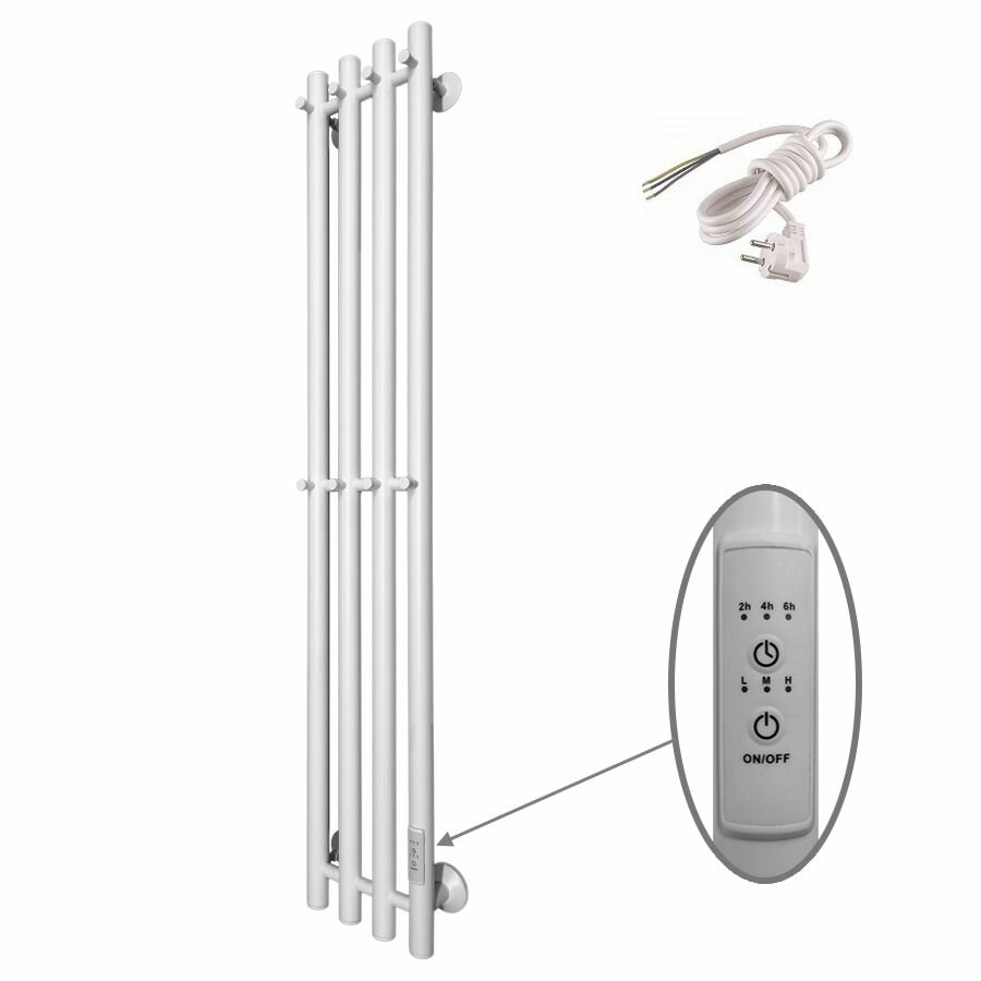 Полотенцесушитель Inaro Р120*6*024 (СНШ, Белый RAL 9016 (мат), 4 секции по 3 вставки, Под скрытый монтаж. С таймером Ferrum, 8 крючков, Кабель с вилкой белый 90 см ; 8 крючков ПО чертежу, Правое подкл.) 15 000 ₽