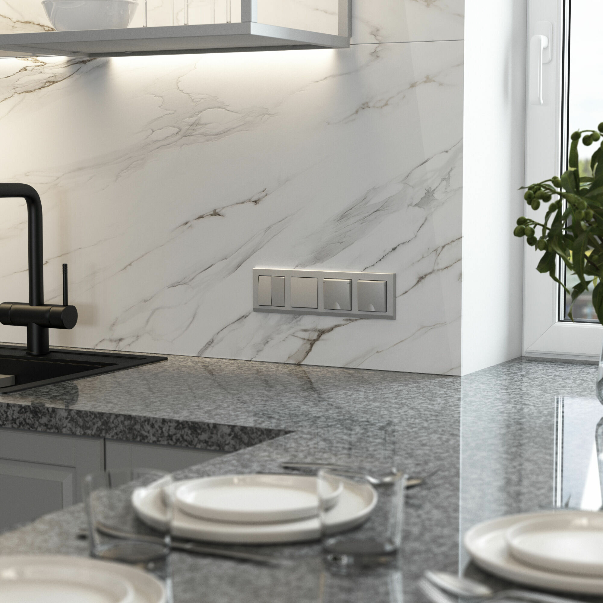 - Розетки, выключатели и рамки