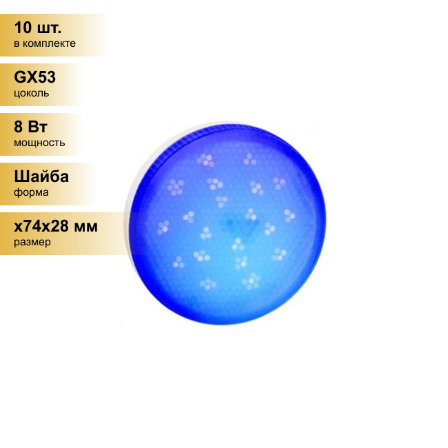 10 цен на (10 шт.) Светодиодная лампочка Ecola GX53 св/д 8W Синий матов. 28x74 T5TB80ELC . Цоколь GX53
