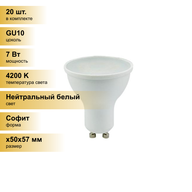 (20 шт.) Светодиодная лампочка Ecola GU10 7W 4200K 4K 56x50 Premium G1UV70ELC Нейтральный белый. Цоколь GU10 информация: