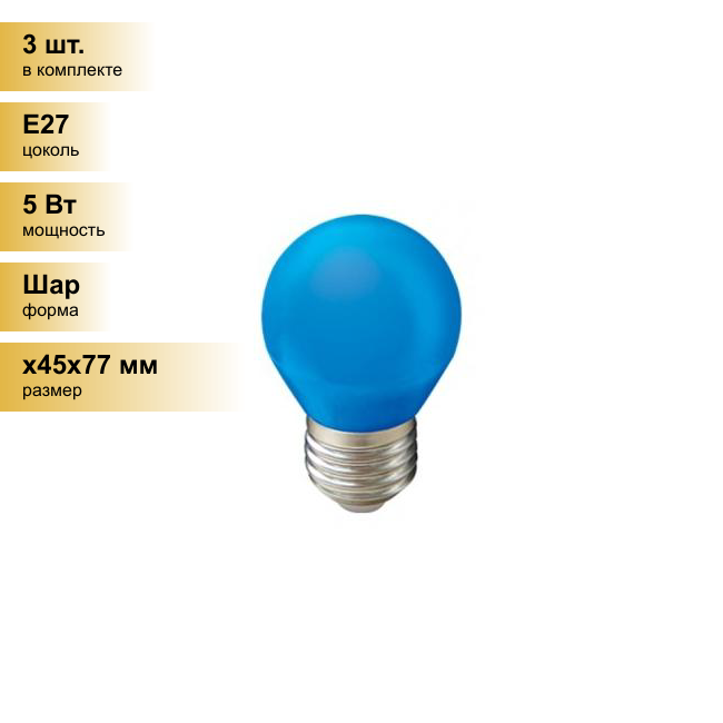 Отзывы на (3 шт.) Светодиодная лампочка Ecola шар G45 E27 5W Синий матов. 77x45 K7CB50ELB . Цоколь E27