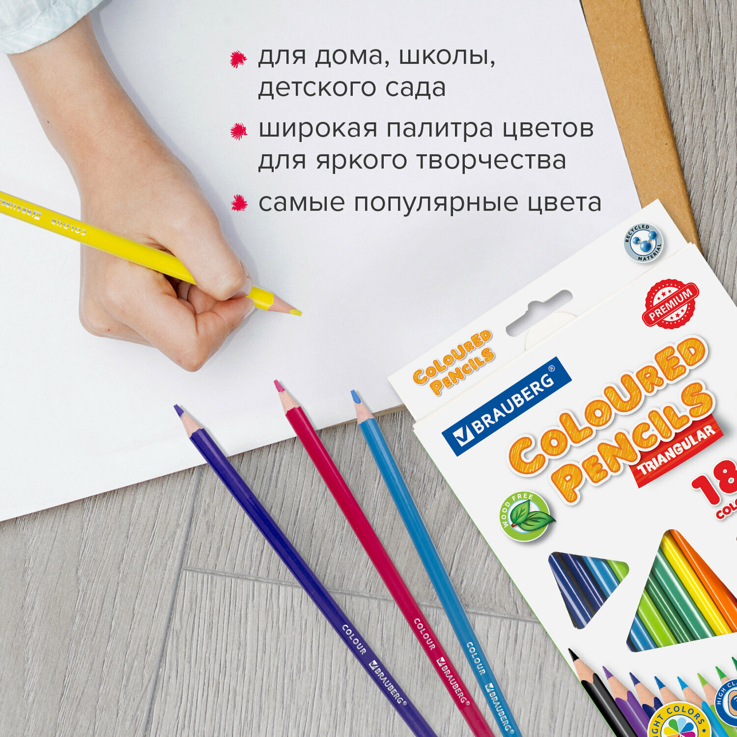 Отзывы на Карандаши пластиковые цветные для рисования Brauberg Premium, 18 цветов, трехгранные, грифель мягкий 3 мм, 181662