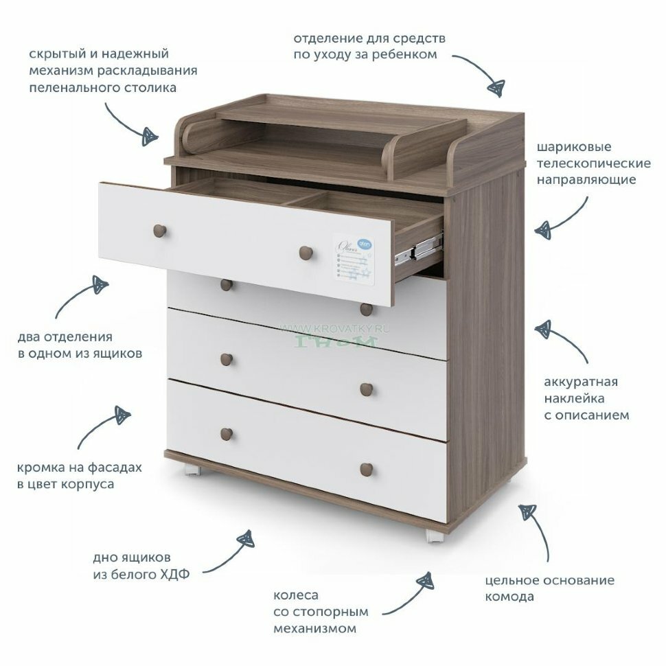 Комод пеленальный Атон Орион 804 (Oliver) ЛДСП с шариковыми направляющими, слоновая кость-белый