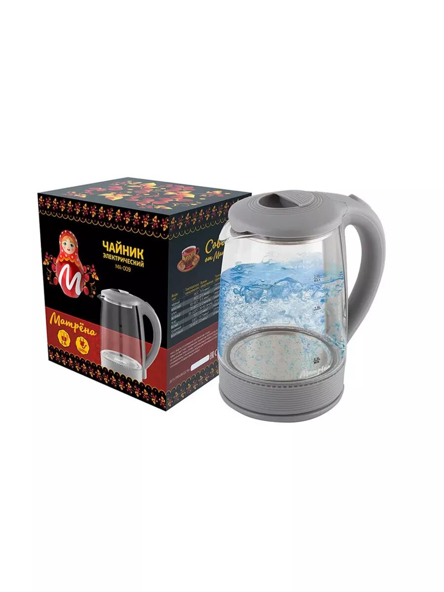 Матрёна Чайник электрический "матрёна" MA-009, стекло, 2 л, 1500 Вт, серый
