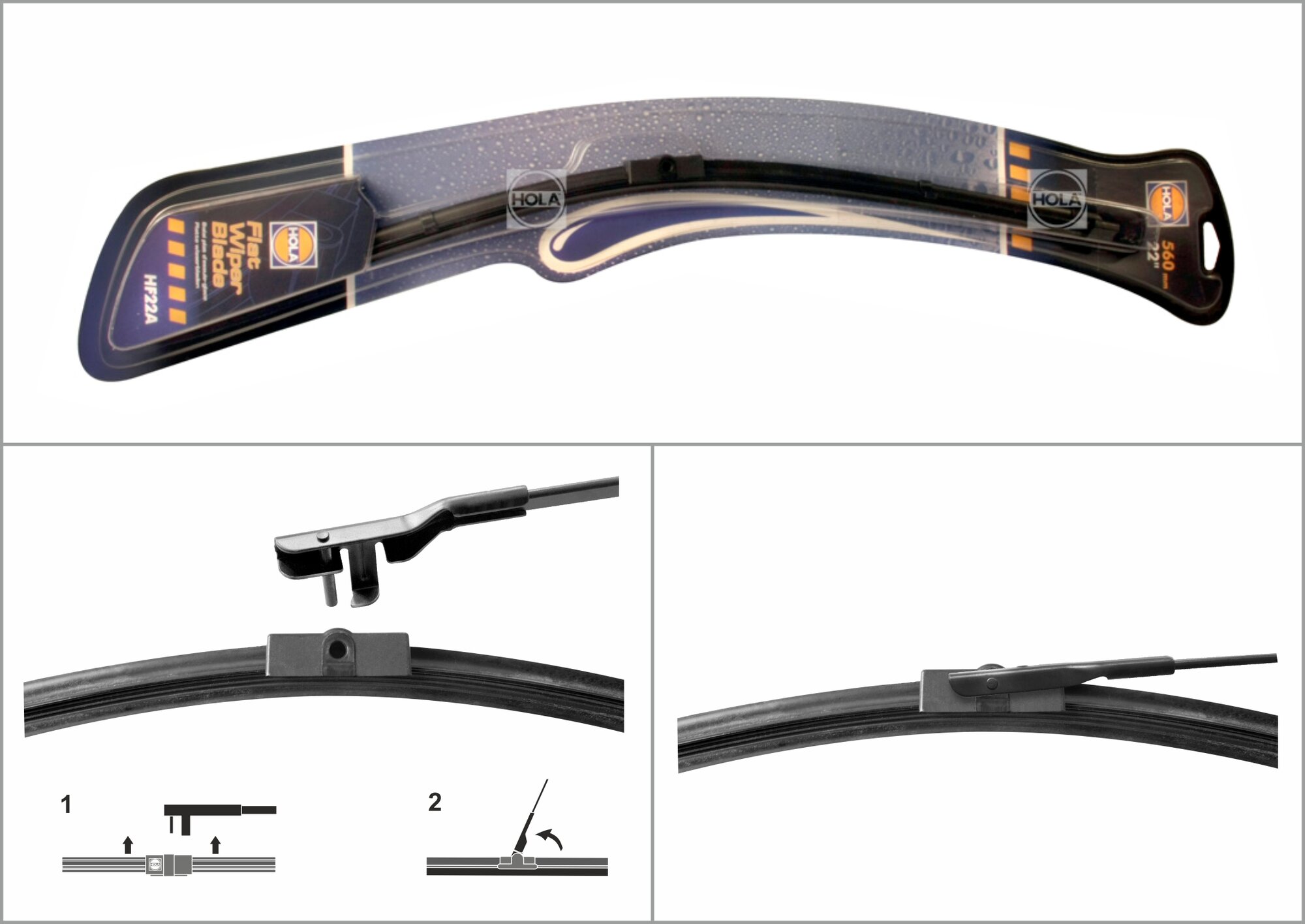 HOLA HF22A Щетка стеклоочистителя, бескаркасная, 1шт. 22/550mm Специальная, адаптер side pin, MERCEDES GLK (204) , OPEL Astra H HF22a