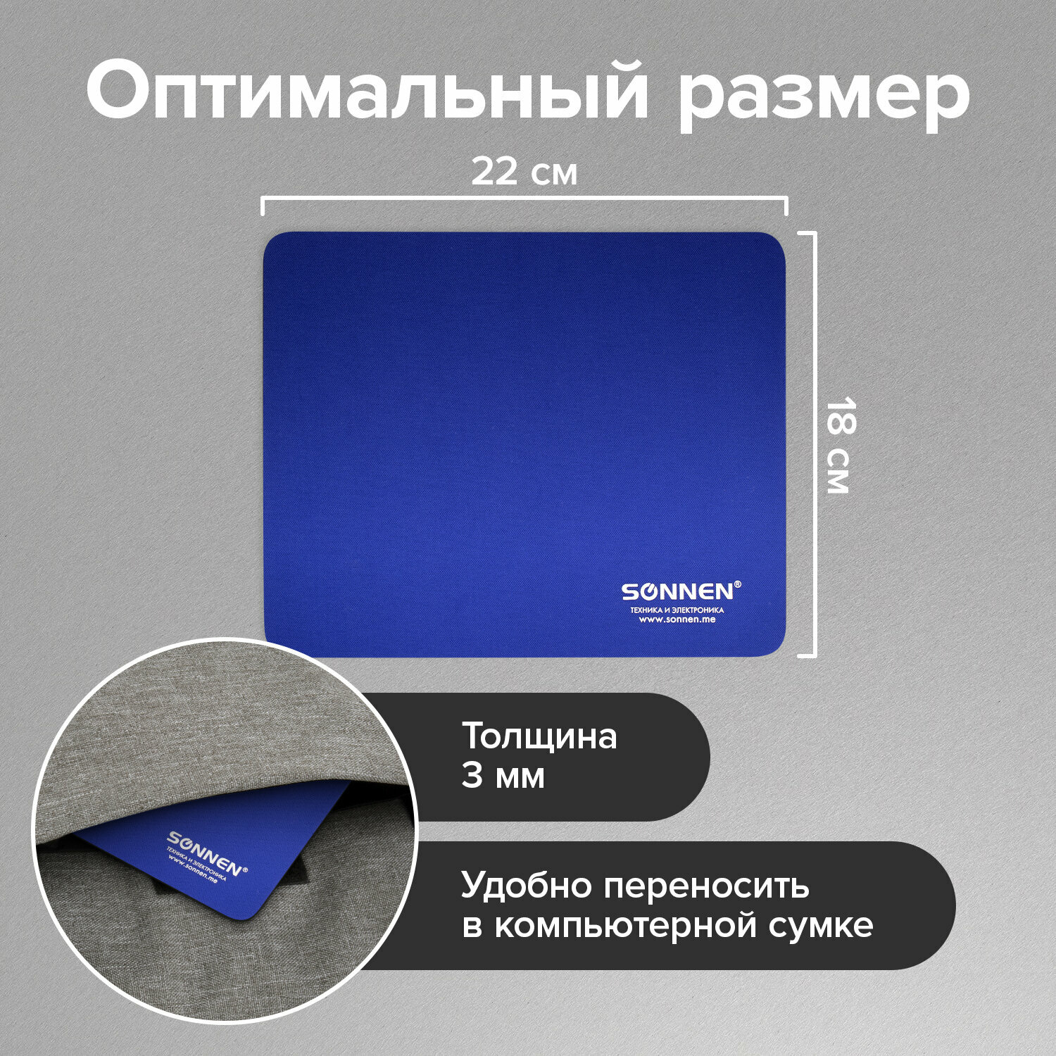 Коврик для мыши Sonnen Blue, резина + ткань, 220х180х3 мм, 513308 информация: