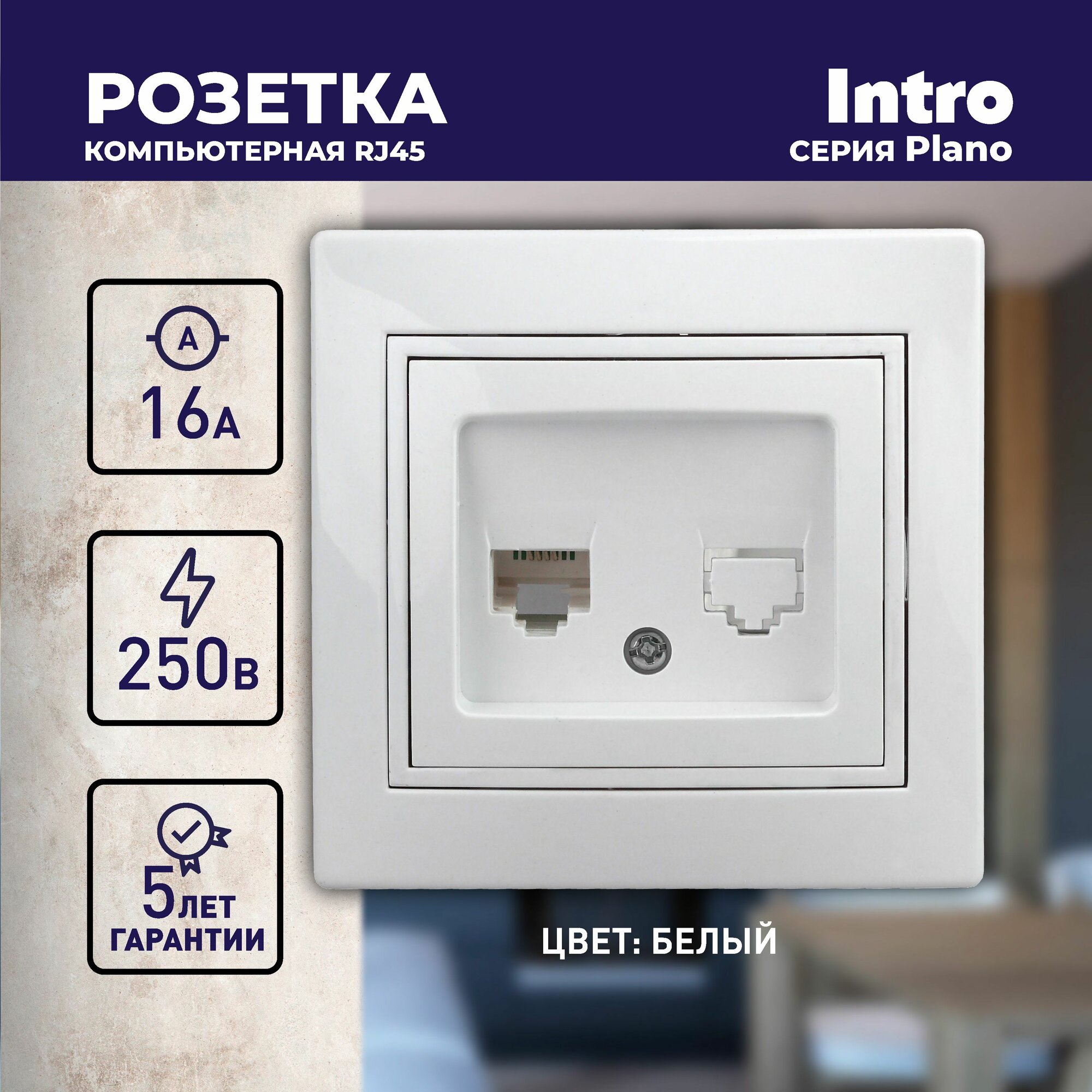 Отзывы на Розетка компьютерная Intro Plano 1-303-01 RJ45 скрытой установки белый